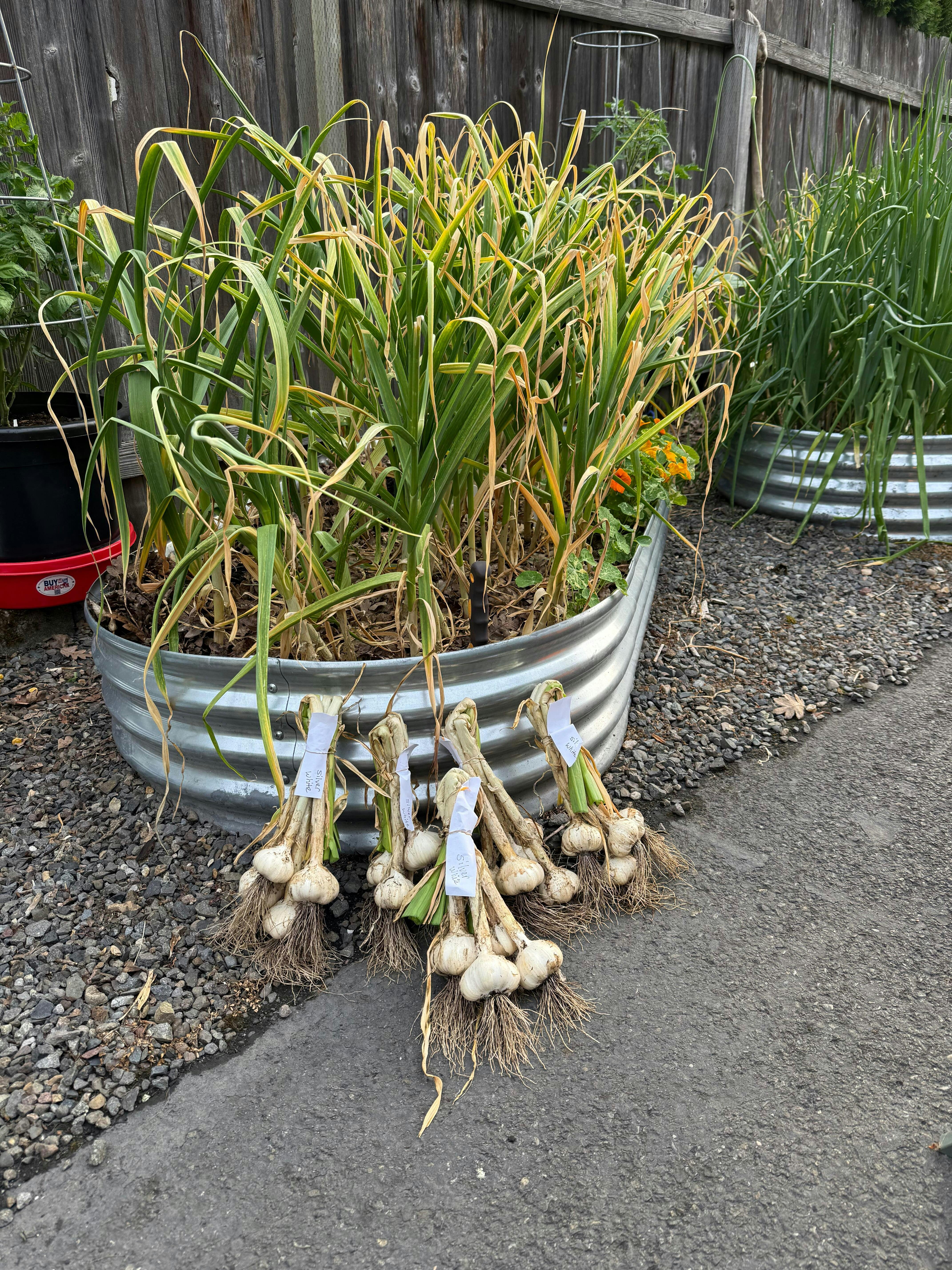 • Hardnecks: cut off any flowering stems (scapes) at the top leaf to redirect energy to the bulb; scapes can be used like green onions
